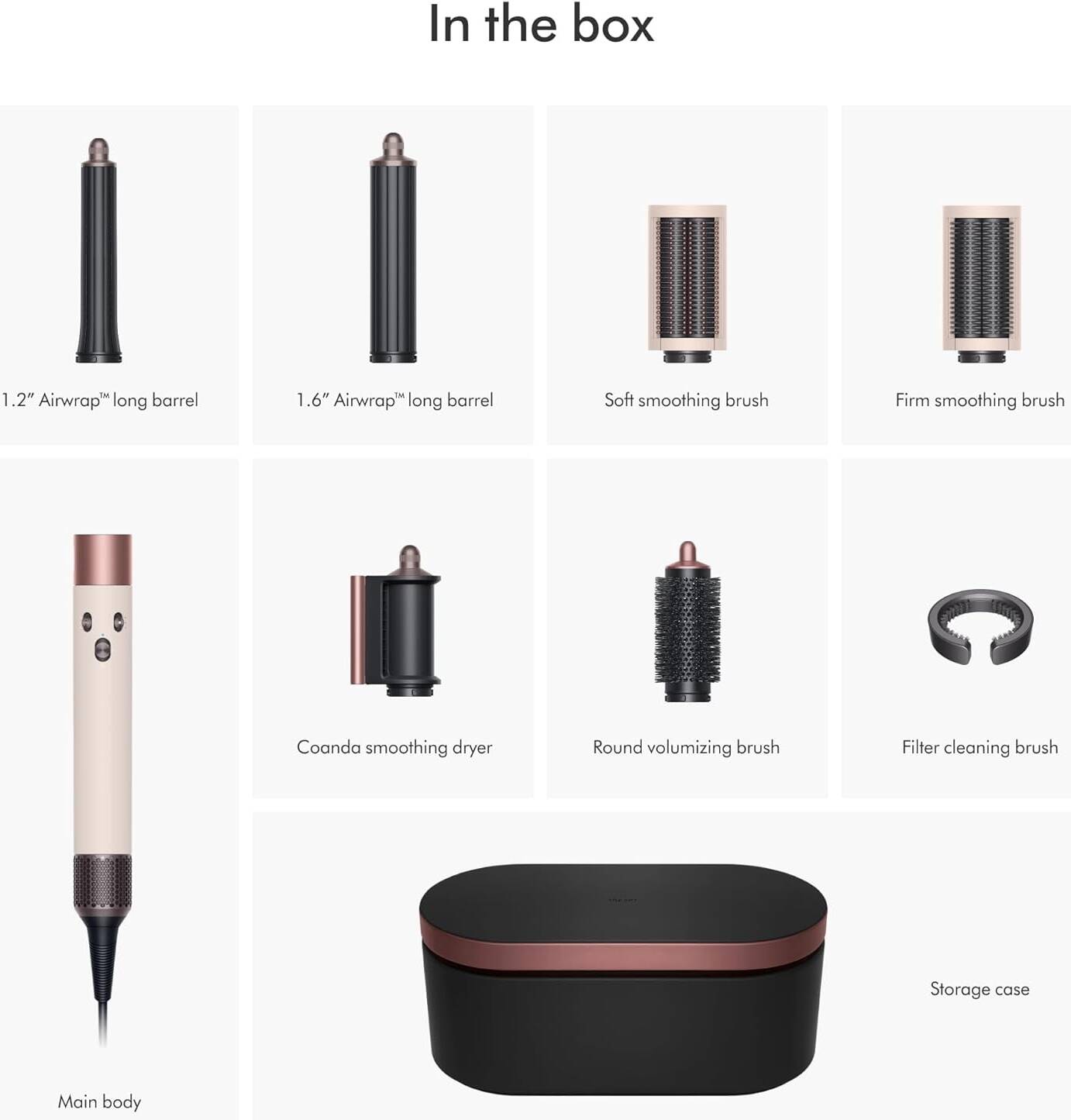 سشوار و فر کننده مو دایسون مدل Airwrap Complete Long HS05 یکی از قدرتمند ترین سشوار های موجود در دنیا است که طراحی بسیار زیبا و بدنه ای با کیفیت دارد . شرکت دایسون که از پرچمداران و بهترین ها و قدیمی ترین کمپانی های ساخت لوازم برقی انگلستانی است چند سالی است با خاصتر کردن طراحی های خود مجدد به چشم طرفداران این کمپانی آمده است.دایسون با تولید سشوارهای جذاب که علاوه بر کیفیت ، ظاهری شیک و خاص نیز دارند در بین بانوان بسیار مشهور شده است . در طراحی سشوارهای این کمپانی که عمدتا به حفظ سلامت موها بیشتر از کمپانی های دیگر فکر شده است، شرکت به شما وعده داده تا موهایتان با استفاده از این دستگاه ها به هیچ وجه آسیب نبینند و خشک یا شکننده نیز نشود . سشوار و فر کننده دایسون Airwrap Complete Long HS05 محصولی کامل و فوق العاده است و یکی از کاملترین سشوارهای این کمپانی به حساب میآید . شما با کمک این دستگاه میتوانید استایل موهای خود را تغییر دهید و آن ها را به زیباترین شکل ممکن آرایش کنید . سشوار برس دار دایسون Airwrap HS05 دارای 6 سری متفاوت است که هر کدام به موهای شما حالتی جدید می بخشد . شما با این 6 سری متنوع میتوانید موها را خشک کنید ، فر کنید ، حالت دار کنید و یا به لخت ترین شکل ممکن در بیاورید . نگران نگهداری این سری ها نباشید چرا که این کمپانی به این موضوع نیز فکر کرده است و یک کیس سورمه ای زیبا برای آن ها تعبیه شده که شما میتوانید دستگاه و سری ها را در آن نگه دارید . در کنار تمام این قابلیت ها این دستگاه نیز قابلیت یون سازی دارد و به سلامت بیشتر موهای شما کمک میکند . فناوری هوشمند پروانه 13 پره تا 110000 دور در دقیقه میچرخد و 3.2 کیلو پاسکال فشار تولید میکند و با بهره مندی از موتور قدرتمند V9 میتواند اثر کوآندا را ایجاد کند. اثر کوآندا در سشوار به توانایی هوا برای چسبیدن و تغییر مسیر دادن اطراف مو و کمک به حالتدهی بهتر آن گفته میشود و این فناوری به بهبود کارایی و سهولت حالتدهی کمک میکند. علاوه بر این، کنترل هوشمند حرارتی دمای جریان هوا را بیش از 40 بار در ثانیه اندازه گیری می کند تا دما را در سطح بهینه نگه دارد .
